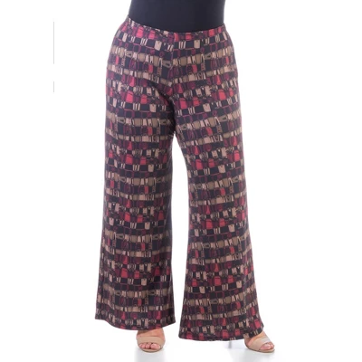 An eye catching and classic style for year round wear, these plus size palazzo pants feature a red abstract print. These comfortable palazzo pants are easy to slip on and go for casual day in or evening out. Featuring relaxed fit, and flared bottoms, this contemporary plus size pant is a must have. Made from a comfortable stretch material in a polyester spandex blend.