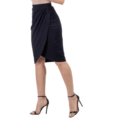 Introducing our Elastic Waist Knee Length Tulip Pencil Skirt a versatile and stylish addition to your wardrobe. Available in three captivating color options, this skirt offers endless possibilities to express your personal style. The draped fabric detail adds a touch of sophistication, elevating your look for both work and dressy outings. Crafted from high quality material, this skirt ensures durability and a comfortable, stretchy fit that moves with you throughout the day. Whether you are attending a professional meeting or going out for a special occasion, this skirt is your go to choice. Its knee length design strikes the perfect balance between chic and modesty. Elevate your fashion game with the Elastic Waist Knee Length Tulip Pencil Skirt and experience the perfect blend of style, comfort, and versatility.