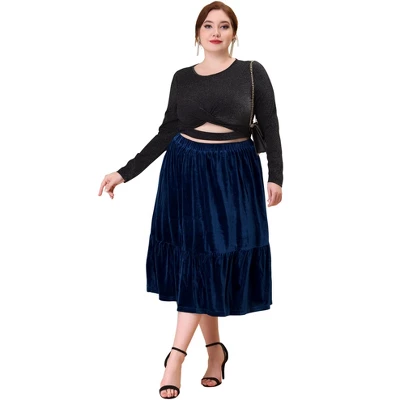 - Our skirt is comfy in a relaxed fit with velvet material and a ruffled hem.