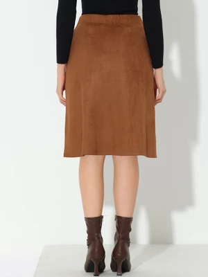 Allegra K Women’s High Waist Faux Suede Knee Length A-Line Skirts