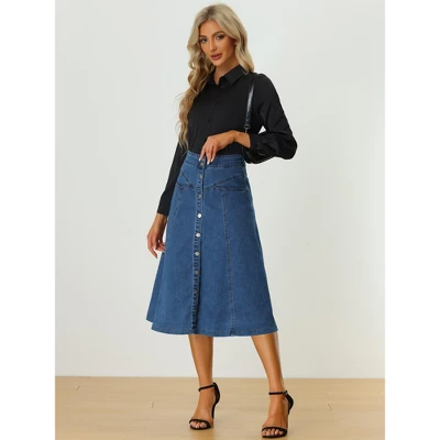 The button front closure helps you easily put on and take off. This midi skirt matches your heels, boots, flats, and slippers. It is suitable for all seasons. With a T-shirt, a sweater, a tank top, or a denim coat, for a lovely and stylish impression, it helps you show your unique charm. The high-waist design accentuates your leg length, making you look taller and slimmer.
