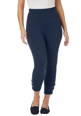 Our customer-fave capri legging reinvented with stylish lace-up detailing at hem. Style this ultra-comfy bottom with sneakers and a tunic for a sporty everyday look with a cool edge!