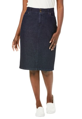 Jean skirt with a built-in tummy control panel and inner elastic waistband for a figure flattering look.