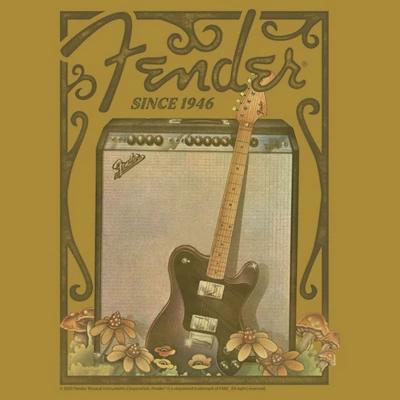 Get ready to hum, strum, and succumb to officially licensed Fender styles! If you’ve always wanted your very own Stratocaster guitar, now is your chance to get one! Or… at least get one on a rockin’ tee! This Juniors’ Since 1946 Retro Poster Festival Muscle Tank Top features a fun poster of a guitar and amp surrounded by flowers and mushrooms.