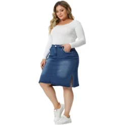 Agnes Orinda Plus Size Jeans For Women Side Slit Bootcut Button Decor Wide Leg Skinny Denim Pants