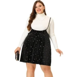 Agnes Orinda Women’s Plus Size Velvet High-Rise Star Versatile Flared Skater Skirt
