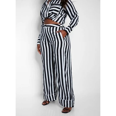 Wide leg pants are a timeless wardrobe staple. With slender stripes, a stylish side zipper for easy access and two side pockets to keep your essentials close by, these trendy trousers will be the ultimate addition to any outfit.