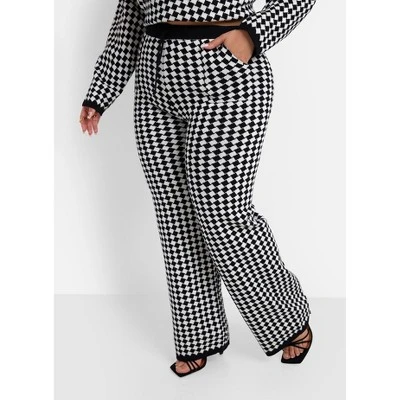 Rebdolls Women’s Octavia Checkered Knit Wide Leg Pants W. Pockets