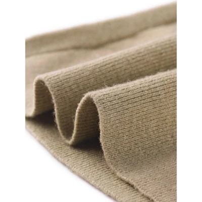 - 50% Acrylic, 27% Polyester, 23% Nylon. It’s soft, stretchy, warm, comfortable and suitable for year-round wear