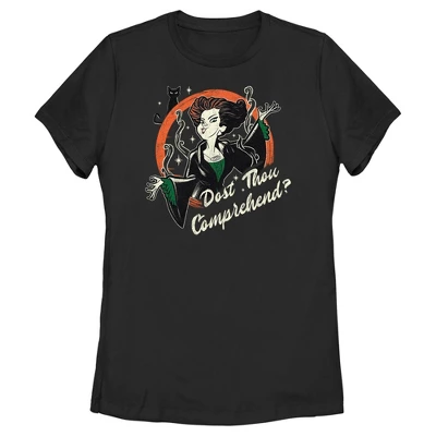 - Strut your stuff with this stylish new Women’s Classic T-Shirt that is perfect for Halloween! Winifred Sanderson and Binx are portrayed in a fun faded style with the text “Dost Thou Comprehend” down the front.