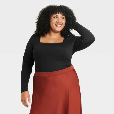 Expand your casualwear staples with this Long-Sleeve Slim Fit Corset T-Shirt from Ava & Viv™. This long-sleeve corset T-shirt in a solid color features a square neck and a slim silhouette for a fitted look. The tee is made from soft and stretchy interlock fabric for comfortable movement and fit, making it a comfortable pick for a variety of occasions. Wear with your choice of bottoms to take on casual days in style.