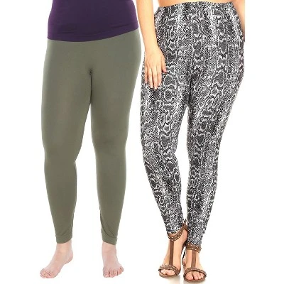 Women’s Pack Of 2 Plus Size Leggings – One Size Fits Most Plus – White Mark